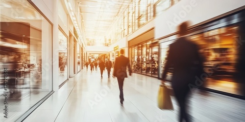 People interact in a lively shopping scene, reflecting contemporary consumer habits.