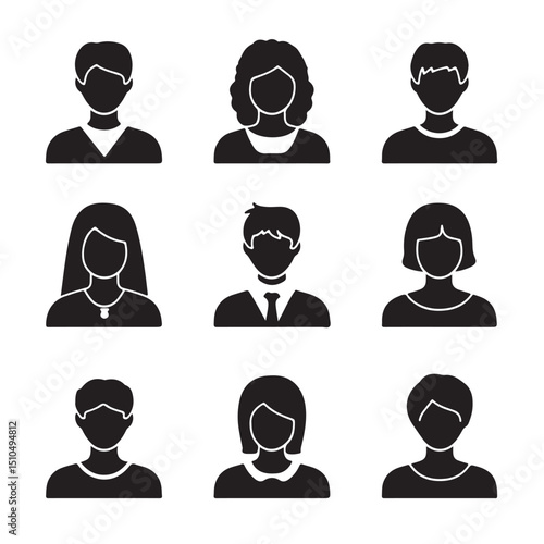 People profile avatar vector set diverse user icon symbol collection silhouette