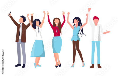 People Raising Their Hands on Vector Illustration