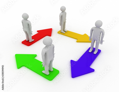 People Standing On Color Arrows . 3d rendered illustration