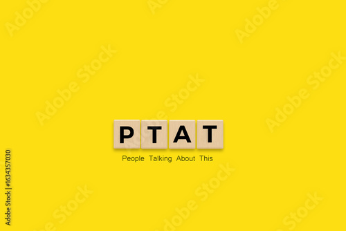 People Talking About This. Letter Tiles on Yellow Background. Minimal Aesthetics.