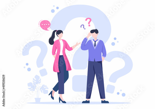 People Thinking to Make Decision, Problem Solving and Find Creative Ideas with Question Mark in Flat Cartoon Background for Poster Illustration