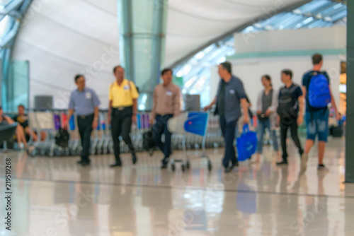 People walking departure from Suvarnabhumi Airport, Thailand blurred for background