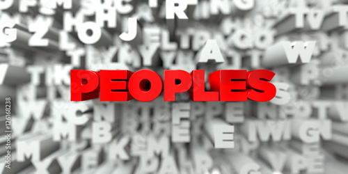 PEOPLES - Red text on typography background - 3D rendered royalty free stock image. This image can be used for an online website banner ad or a print postcard.