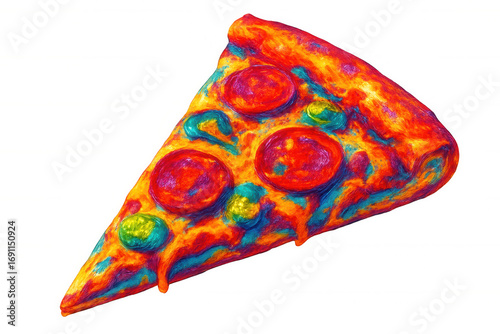 Pepperoni pizza slice displaying melting cheese, vibrant colors, crispy crust against transparent backdrop with appetizing appeal