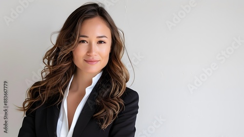 Perfect business lady. Beautiful young businesswoman looking at camera with smile while standing against white background.