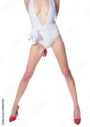 Perfect female legs wearing high heels. Beauty concept. Isolated