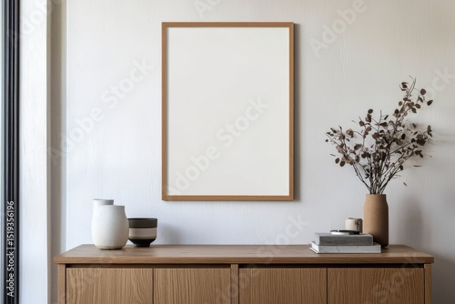 Perfect for designers, this mockup features a blank frame in a cozy cabinet setting.