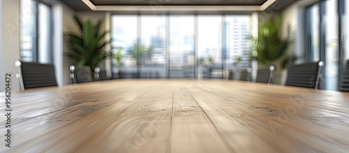 Perfect for displaying office products a modern office backdrop blurs behind a prominent table providing copy space image