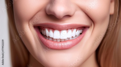 Perfect healthy teeth smile of a woman isolated on a white background.