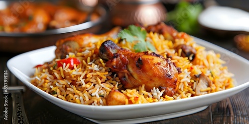 Perfect Indian Dinner Cuisine Delicious Hyderabadi Chicken Biryani. Concept Indian Cuisine, Hyderabadi Chicken Biryani, Delicious Dinner, Spices and Flavors