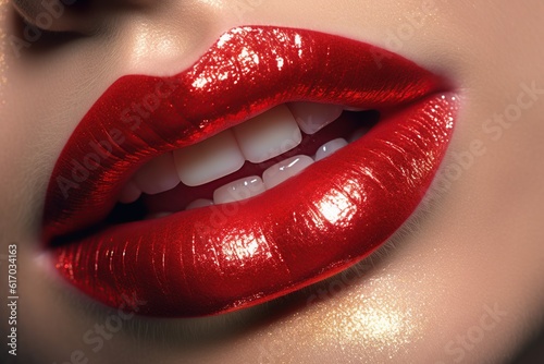 Perfect Lips, Sensuality, glitter, Lipstick, Women, Sexy girl mouth close up Beauty young woman,Generative AI