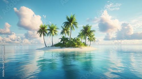 Perfect vacation travel time, featuring a serene tropical island ideal for a weekend getaway, vacation, or romantic honeymoon escape with palm trees and clear blue waters.