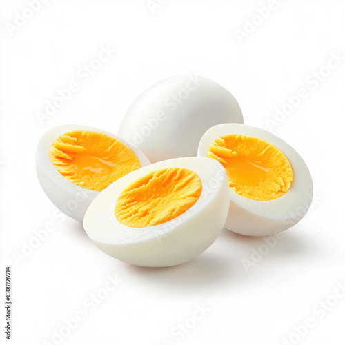 Perfectly boiled eggs presented in realistic photography style showcasing their texture and culinary appeal in copy space