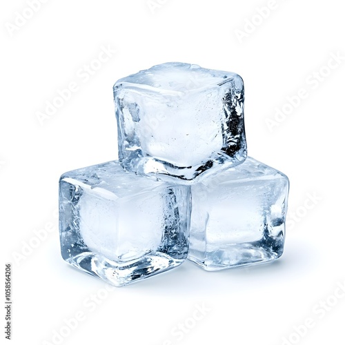 Perfectly Clear and Pristine Cubes of Ice Isolated on White Background