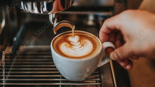 Perfectly Crafted Latte Art Under Espresso Machine Creating Heart in Coffee Cup : Generative AI