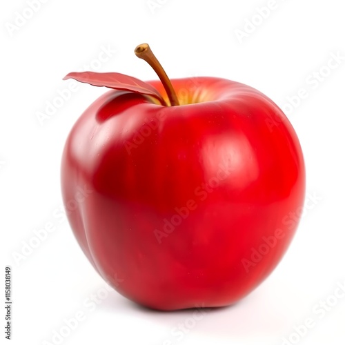 Perfectly Ripe Red Apple with a Single Leaf on a White Background - Fresh and Healthy Fruit Photography