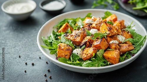 Perfectly roasted sweet potatoes with crisp edges and fresh greens on a white plate for a beautiful presentation
