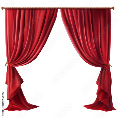 Performance stage red curtain isolated on transparent background