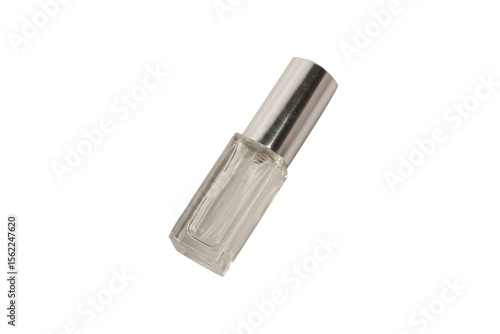 Perfume automiser, perfume transparent glass bottle isolated on white background.