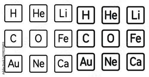 Periodic table linear icons set - outline, chemistry, educational symbols