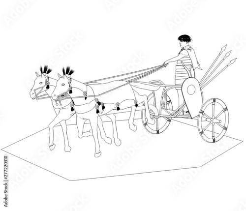 persian chariot, contour visualization, 3D illustration, sketch, outline