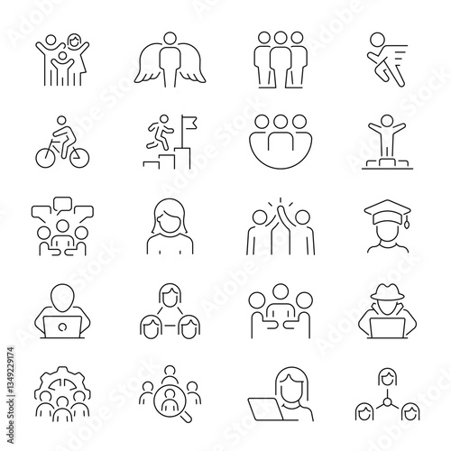 Person and people linear icons collection. People icon set. People, person, family, human, team, friendship, community related thin line icon collection. Editable stroke
