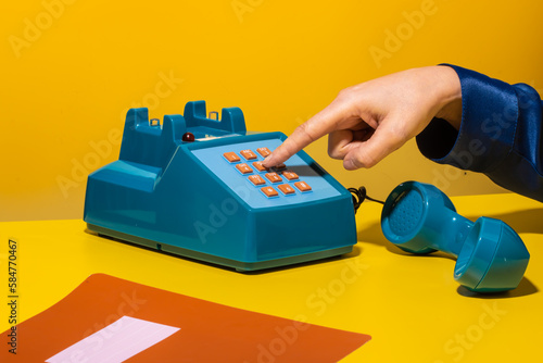 Person dialing number on phone