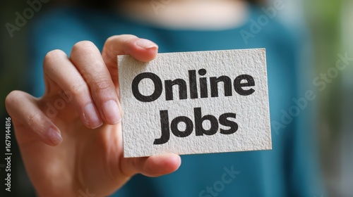 Person Displaying Online Job Opportunities Sign, Vibrant and Modern Stock Image for Digital Marketing or CareerFocused Campaigns, Encouraging and Inspiring a New Beginning.