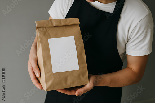 Person Holding a Brown Paper Bag with a Blank Label Mockup