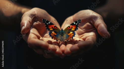 Person holding a butterfly, suitable for nature and wildlife concepts