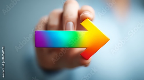 Person holding a colorful arrow symbolizing direction and positive movement.