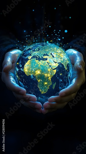 Person holding a glowing Earth sphere, symbolizing global unity and preservation.