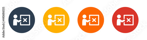 Person holding cross sign icon. Disapproval sign.