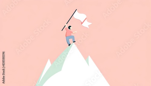 Person Holding Flag on Mountain Peak Illustration