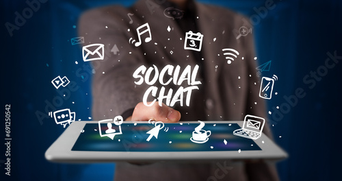 Person holding tablet, social network concept