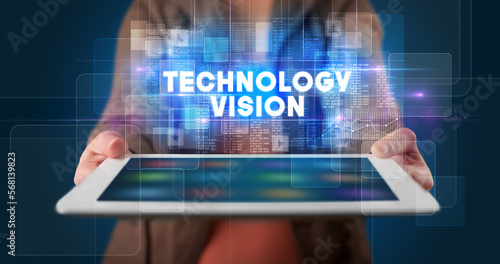 Person holding tablet, technology concept