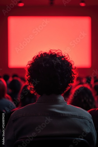 Person in front of red screen