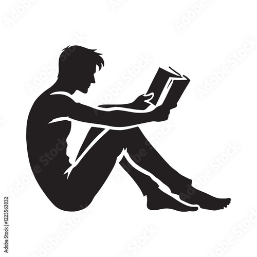 Person in silhouette while reading a book - reading person silhouette - reading person vector - reading person illustration - reading silhouette - reading vector