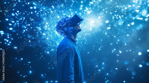 Person Interacting with 3D Holographic Model in Digital Space