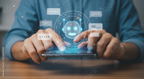 Person interacts with a chatbot on a mobile phone displaying artificial intelligence and digital communication