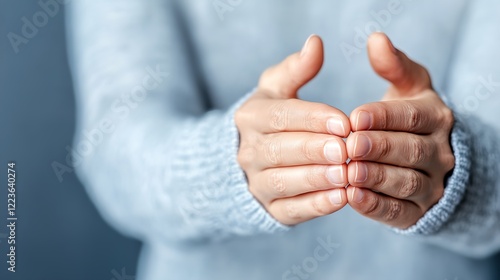 Person is holding their hands outstretched, as if to offer comfort or support