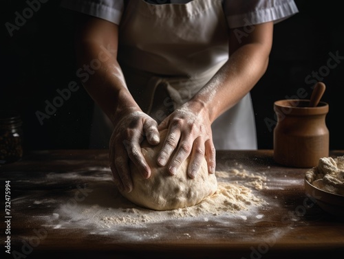 person kneading dough for homemade bread, with flour dusted on their hands. Ai Generated