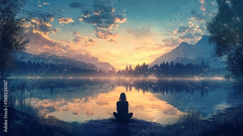 Person Meditating by Lake Shore