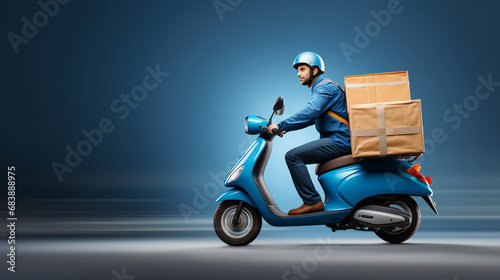 Person on scooter delivering shopping packages orders for customers. Fast and reliable express service.