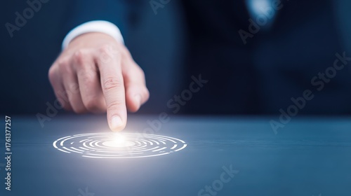 Person points at finger on table hand indicates precise location of a digit on wooden surface