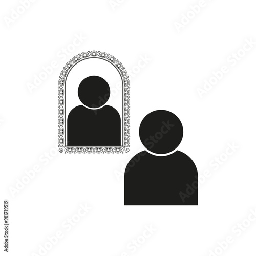 Person reflection icon. Mirror and figure. Human silhouette in mirror. Self reflection symbol.