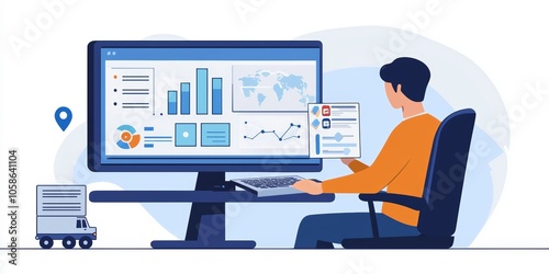 Person reviewing ai-generated analytics on a computer screen for optimizing last-mile delivery processes in logistics
