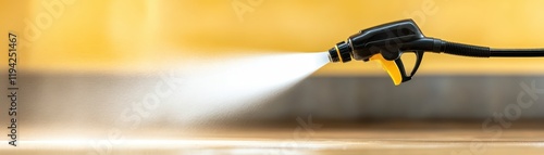Person spraying water on floor for cleaning and hygiene maintenance.