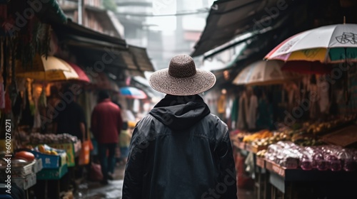 person strolling through a street market or bazaar generative ai